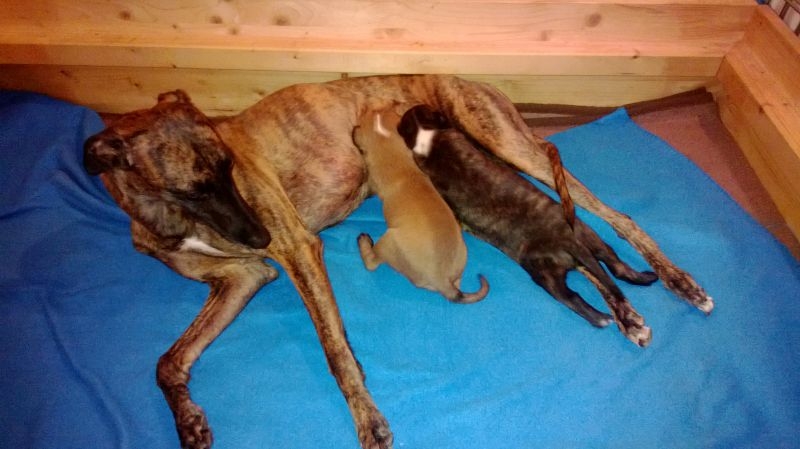 Ginie ist eine super Mutter, die es sichtlich mit ihren Welpen genießt.